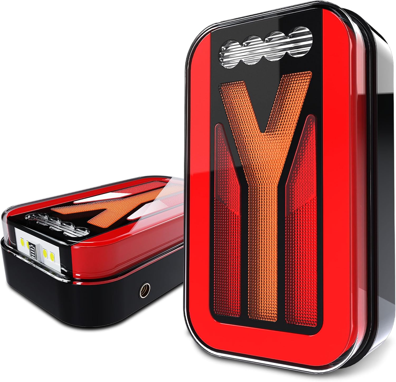 ASLONG Wireless Magnetic Trailer Lights for Towing Light Kit 2PCS Rechargeable Tow Taillight Rear Light Stop Turn Running Light Indicator License Plate Lights Universal for Trailers Trucks RVs Boats