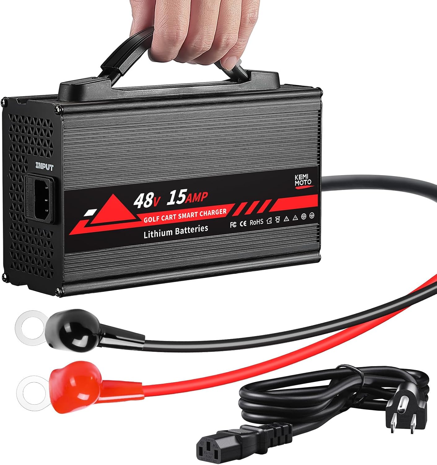 KEMIMOTO 48V Lithium Battery Golf Cart Charger Universal Fit, Onboard 15A 51.2V-58.4V Lifepo4 Battery Charger, 48 Volt Golf Cart Battery Charger, Overcharge Protection, Full in 4-6H, Trickle Charge