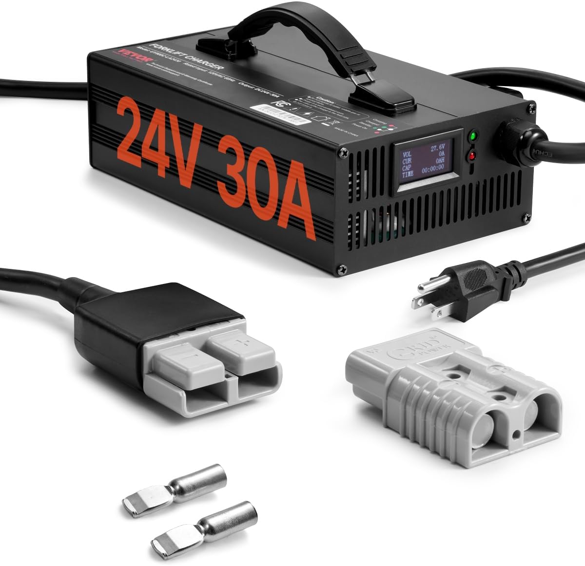 VEVOR Forklift Battery Charger, 24V, 30A Smart Fully-Automatic Lead-Acid Battery Charger, 24 Volt Trickle Charger with Anderson Plug, Cooling Fan, OLED Display, for Forklift Golf Cart Floor Scrubber