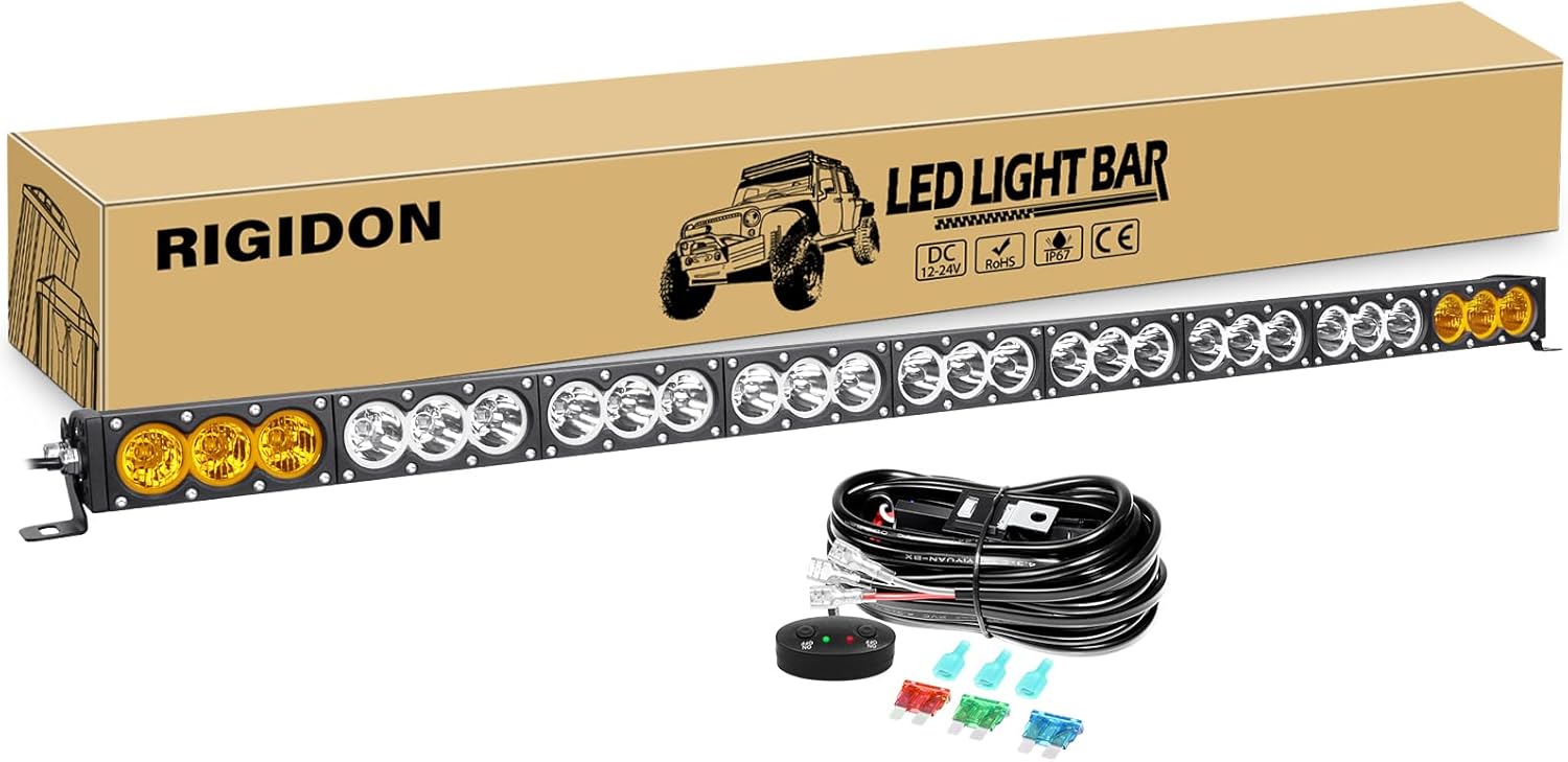 RIGIDON 49 Inch 270W Single Row LED Light Bar with Wire Harness, White Amber Spot Flood Combo 27000LM Off-road Light Driving Boat LED Fog Work Light for Trucks ATVs UTVs SUVs Car