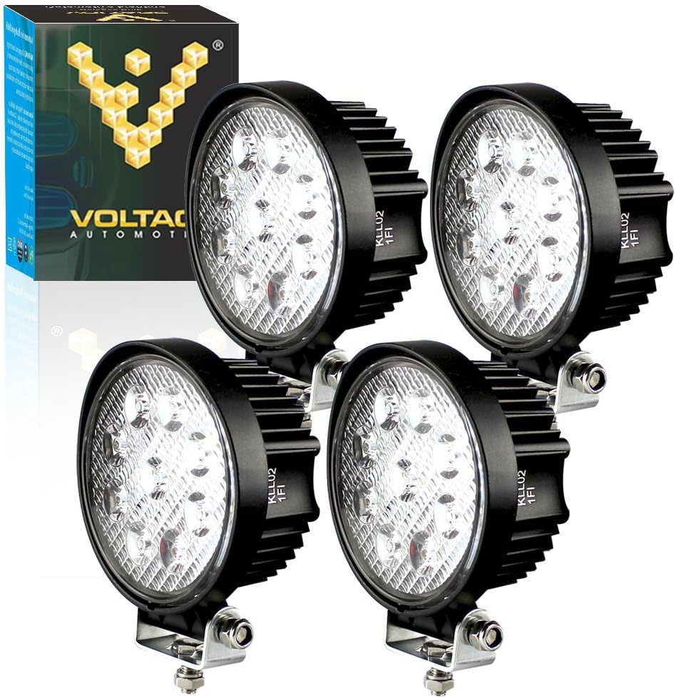 Voltage Automotive LED Pods Spot Flood Light 4" 27W Round Work Light 6000K for Tractor Bulldozer UTV Golf Cart Boat Off Road Truck Jeep SUV ATV (4x Spot Light)