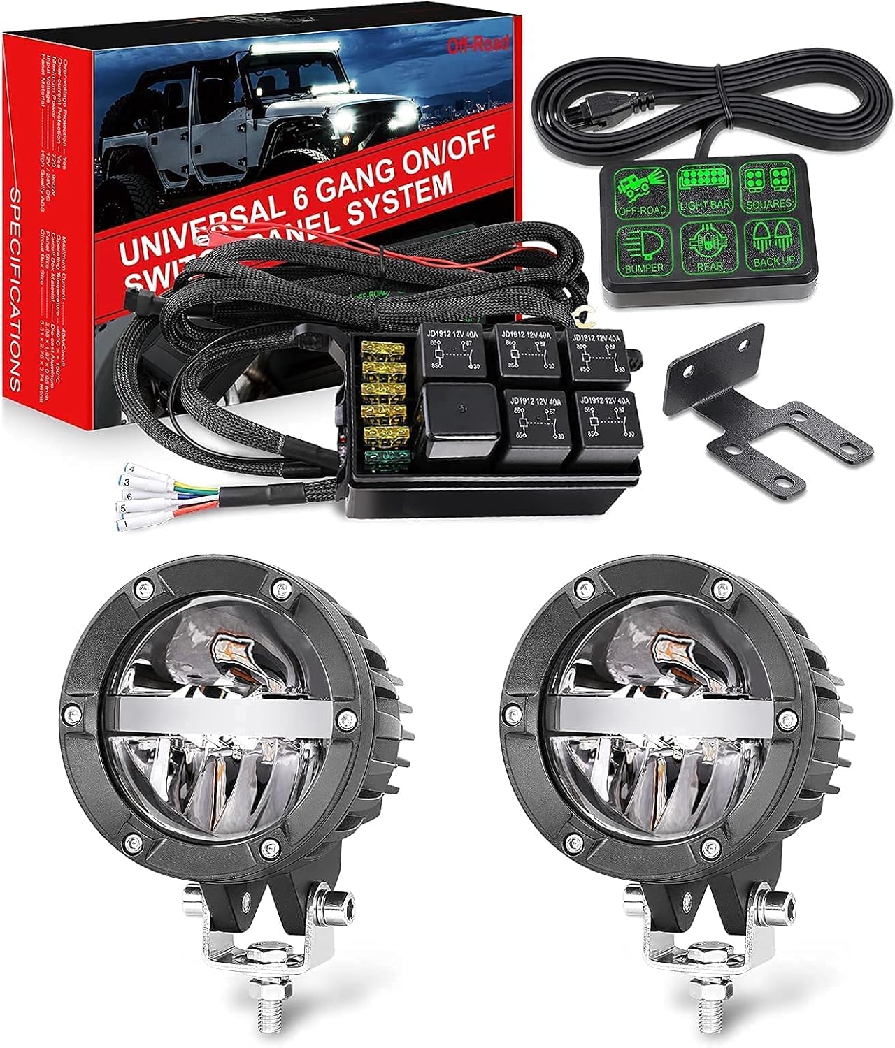 2PCS High Low Beam LED Pod Light + 6 Gang Switch Panel Kit