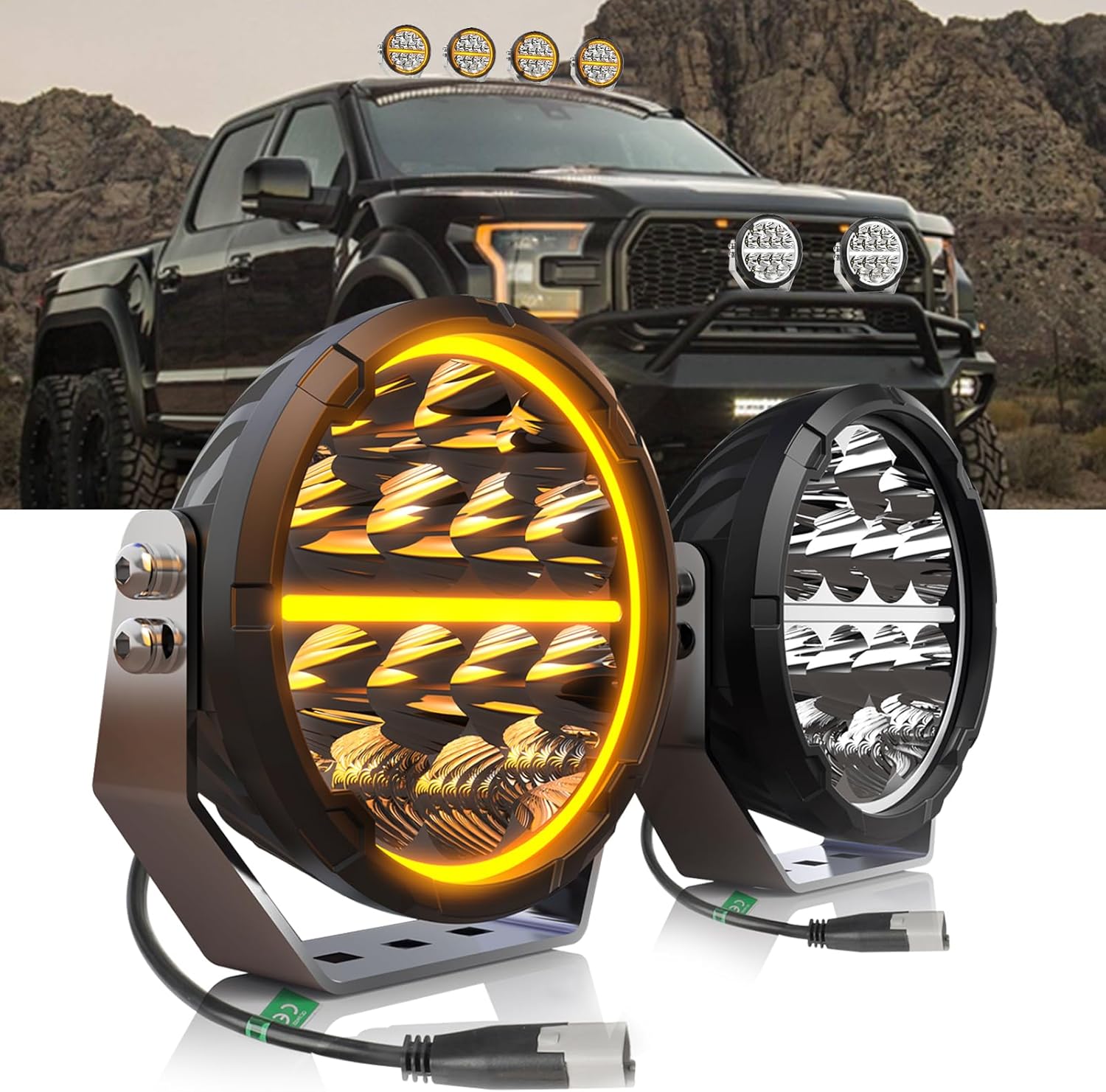 BraveWAY Round LED Offroad Lights 6.5 in 2PC 140W with White & Amber DRL Spot-Flood Combo 20400LM Output Long Distance Driving Auxiliary Work Pods Cubes Light for Trucks, 4WD, 4x4 ATVs, UTVs, Pickups