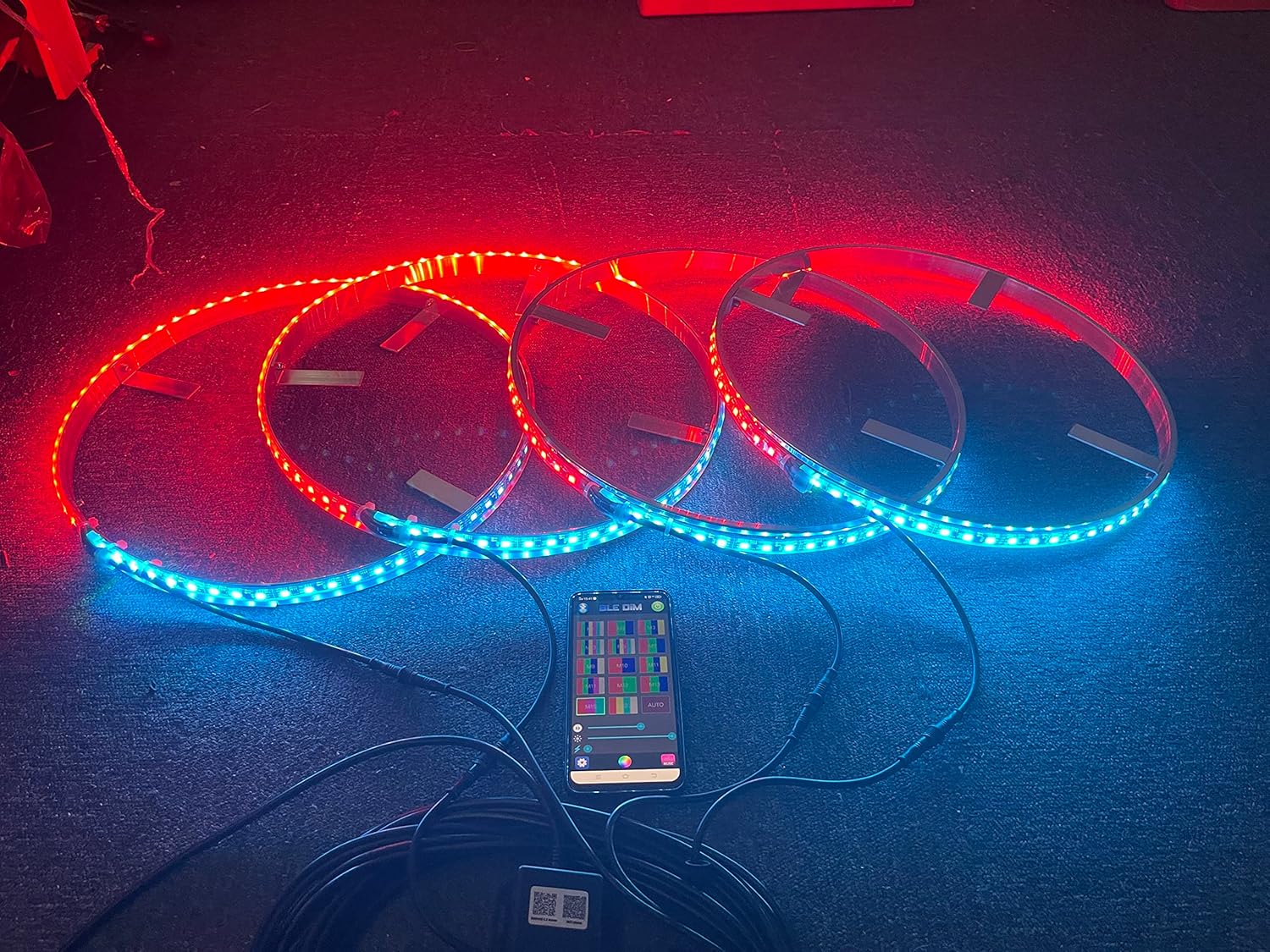 FIA 15.5'' Dream Color Chasing LED Wheel Ring Light Kit Dancing w/Turn Signal,Braking Remote and Bluetooth Ctrl Car Truck Vehical UTV ATV Offroad