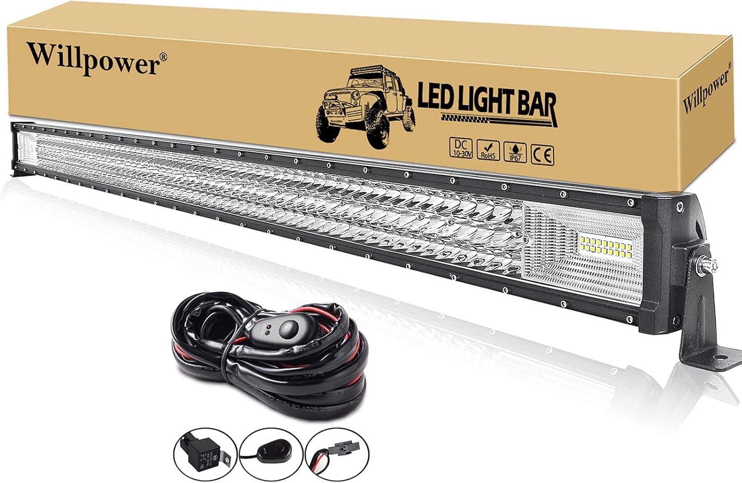 Willpower 50 inch Triple Row LED Light Bar with Wiring Harness Kit, White, Plastic and Aluminum