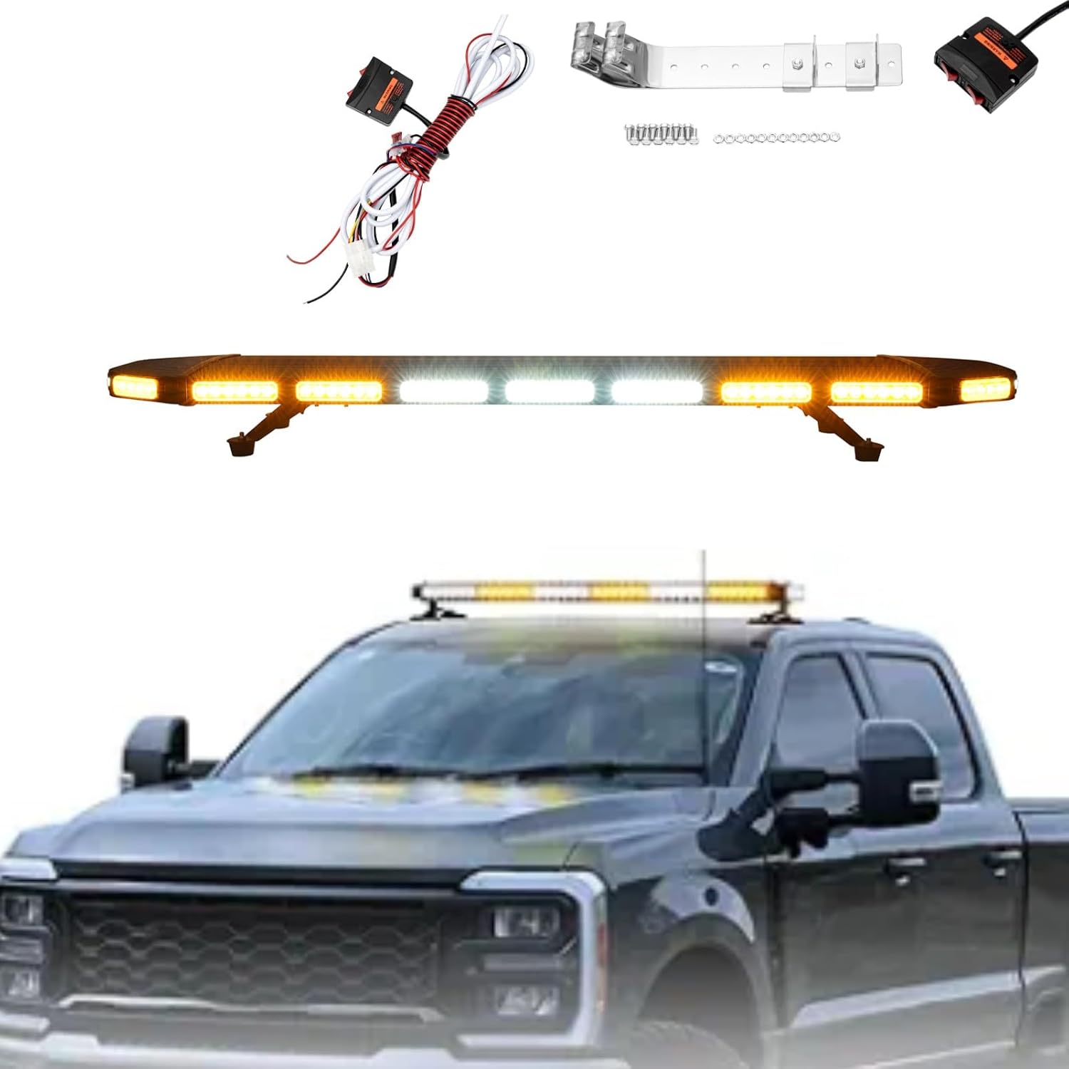 48 Inch Rooftop Emergency Light Bar, 108 LED Double Side Strobe Lights with 15 Flash Modes, Amber Warning Caution Security Lightbar for Vehicles Tow Trucks Trailers Snowplow