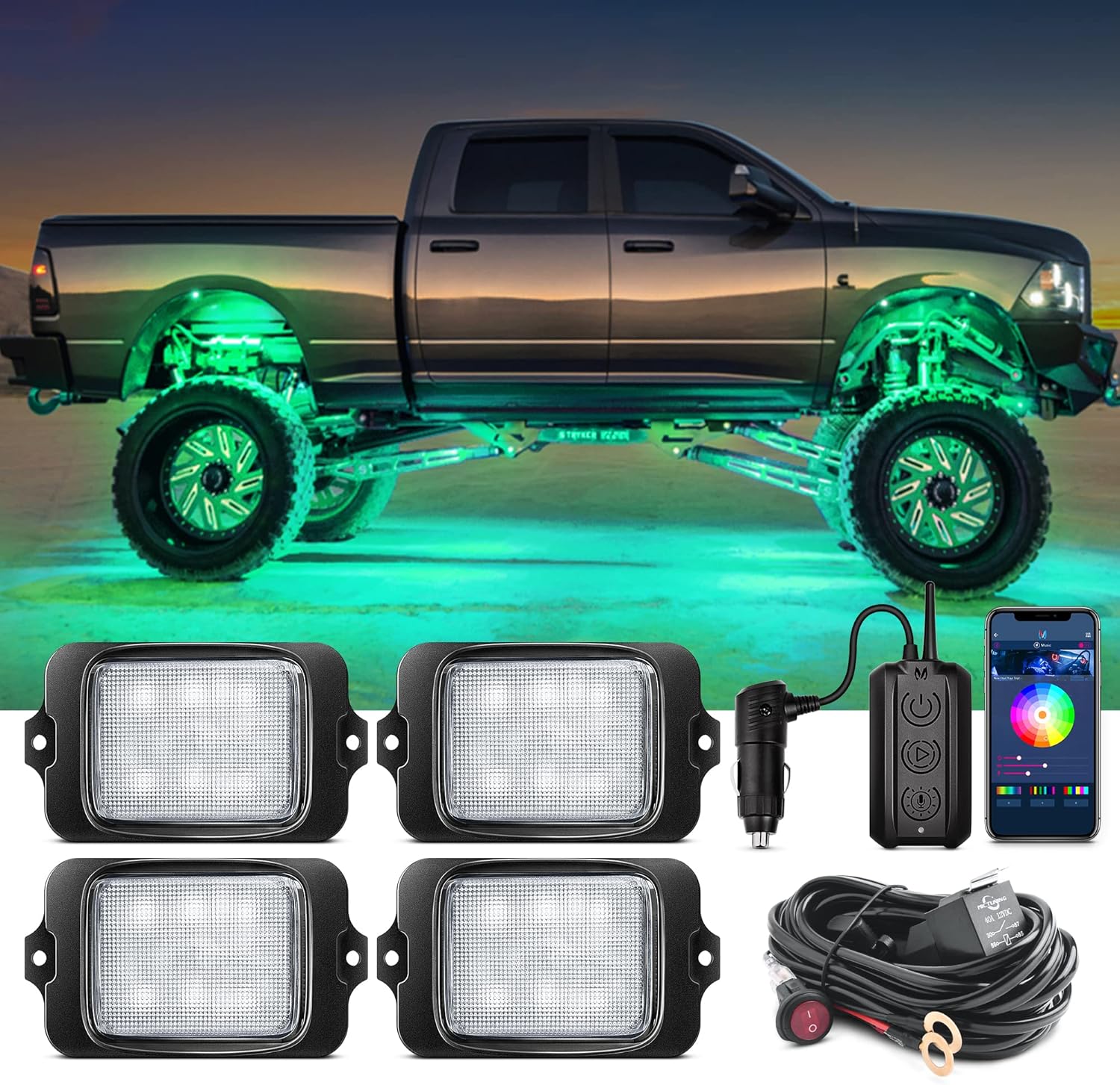 MICTUNING C3 Extensible RGBW Rock Lights - 4 Pods Multi-Color Neon Underglow Lights with Bluetooth APP & Control Box (Extensible Up to 32 Pods)