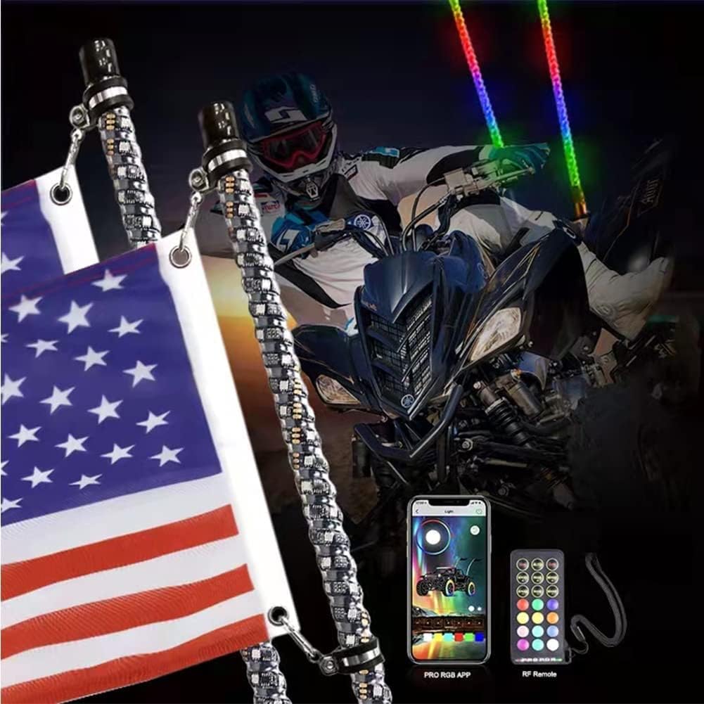 led Lighted Antenna Whips 2 Pcs 4ft Led Whip Light for Off-Road Vehicles ATV UTV RZR Trucks Car Decoration, Weatherproof Lighted Antenna Whips with Flag Pole Remote Control