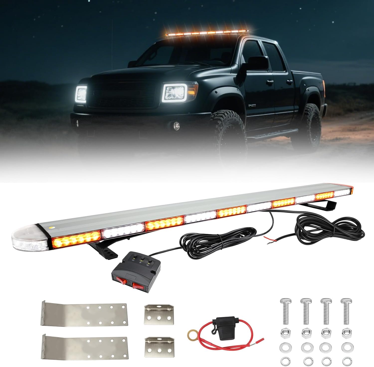 48 Inch Amber White Low Profile Rooftop Strobe Lights Bar, High Intensity Emergency Light Bar with Controller, 138 LED,12-24V, Full Aluminum Construction Roof Lights for Truck, Snowplow, Tractor