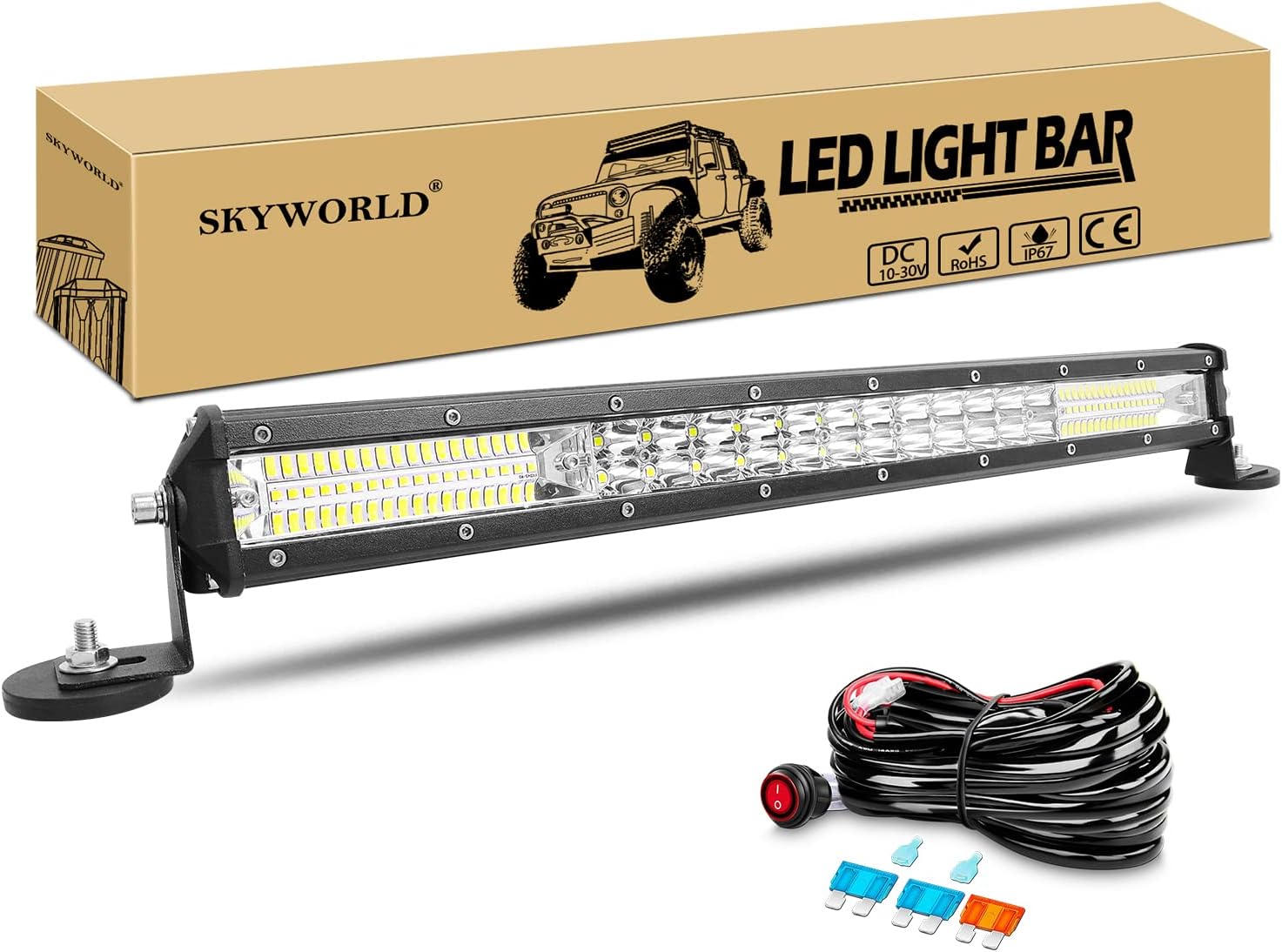 SKYWORLD 20 inch 180W 7D Driving Led Light Bar with 12V Wiring Harness Cable Kit, 2 Pcs Strong Magnetic Bracket Mounting Holder for Car Off Road Truck SUV ATV 4x4, Combo LED Work Lamp, 6000K White
