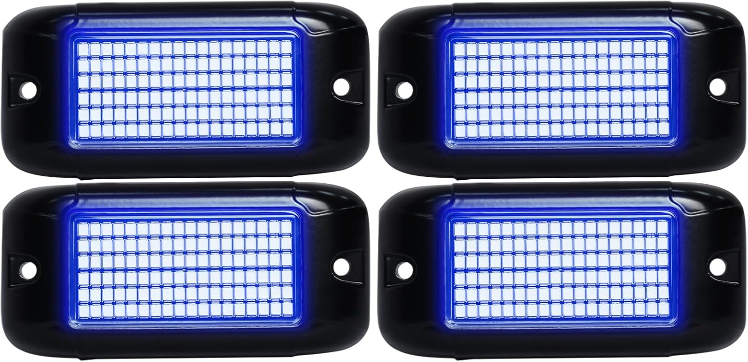 Nicoko 108 High-Power LEDs per Pod 4Pods Pure Blue Rock Lights Ultra-Bright Offroad Underglow Kit Advanced Heat Dissipation IP68 Waterproof for Truck, SUV, UTV, ATV, RZR