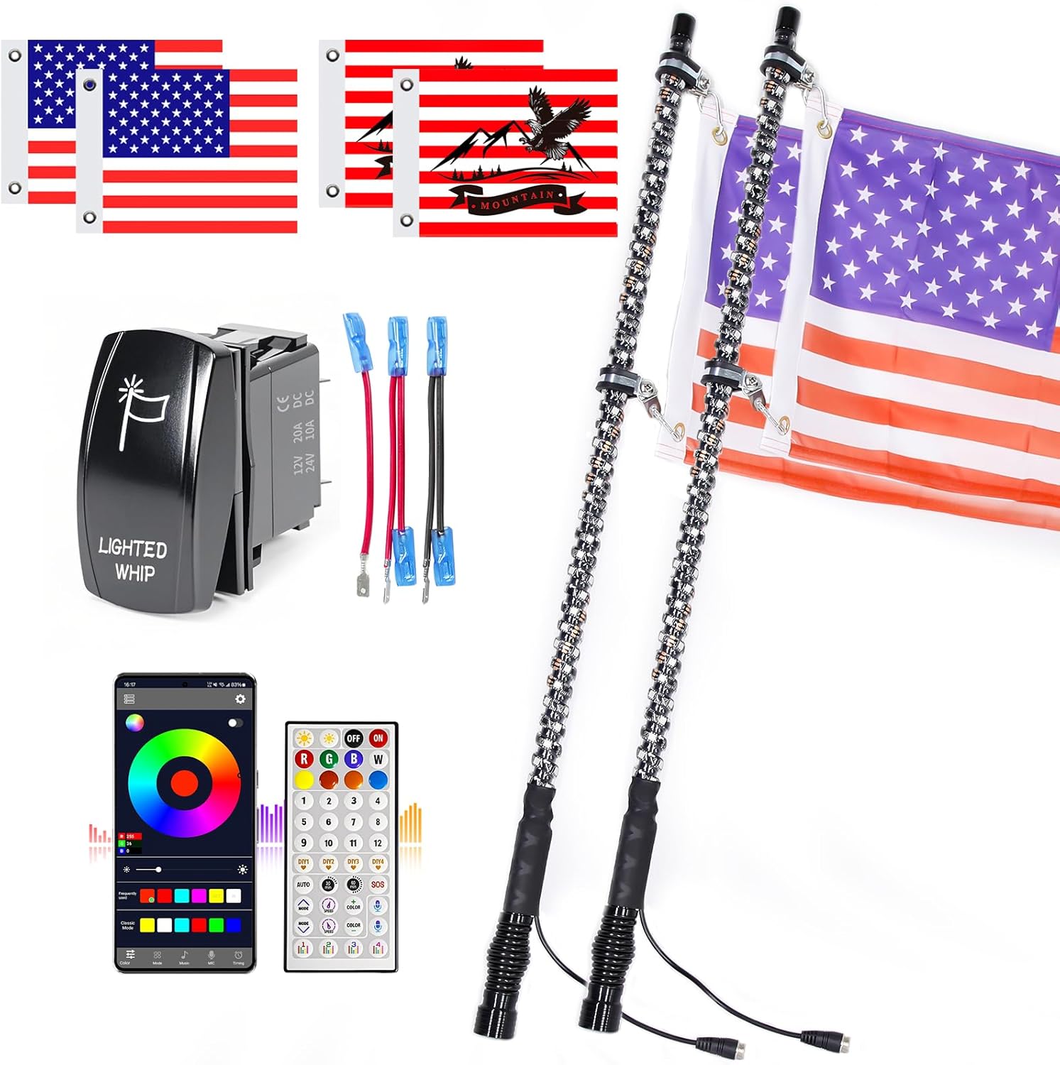 UNI-SHINE 2PCS 3FT LED Whip Lights with Spring Base Spiral RGB Chasing Lights with APP & Remote Control, Music Antenna Whip Light for Can-Am UTV ATV RZR Can-Am SXS Polaris Offroad Truck