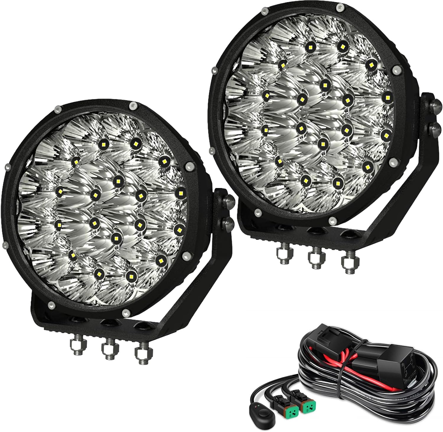 7Inch Round LED Offroad Lights 2PCS with Wiring Harness, 210W 32000LM Amber Driving Fog Lights, Spot Flood Combo, Waterproof IP68/IP69K, 12V 24V for Truck SUV Jeep ATV UTV 4x4