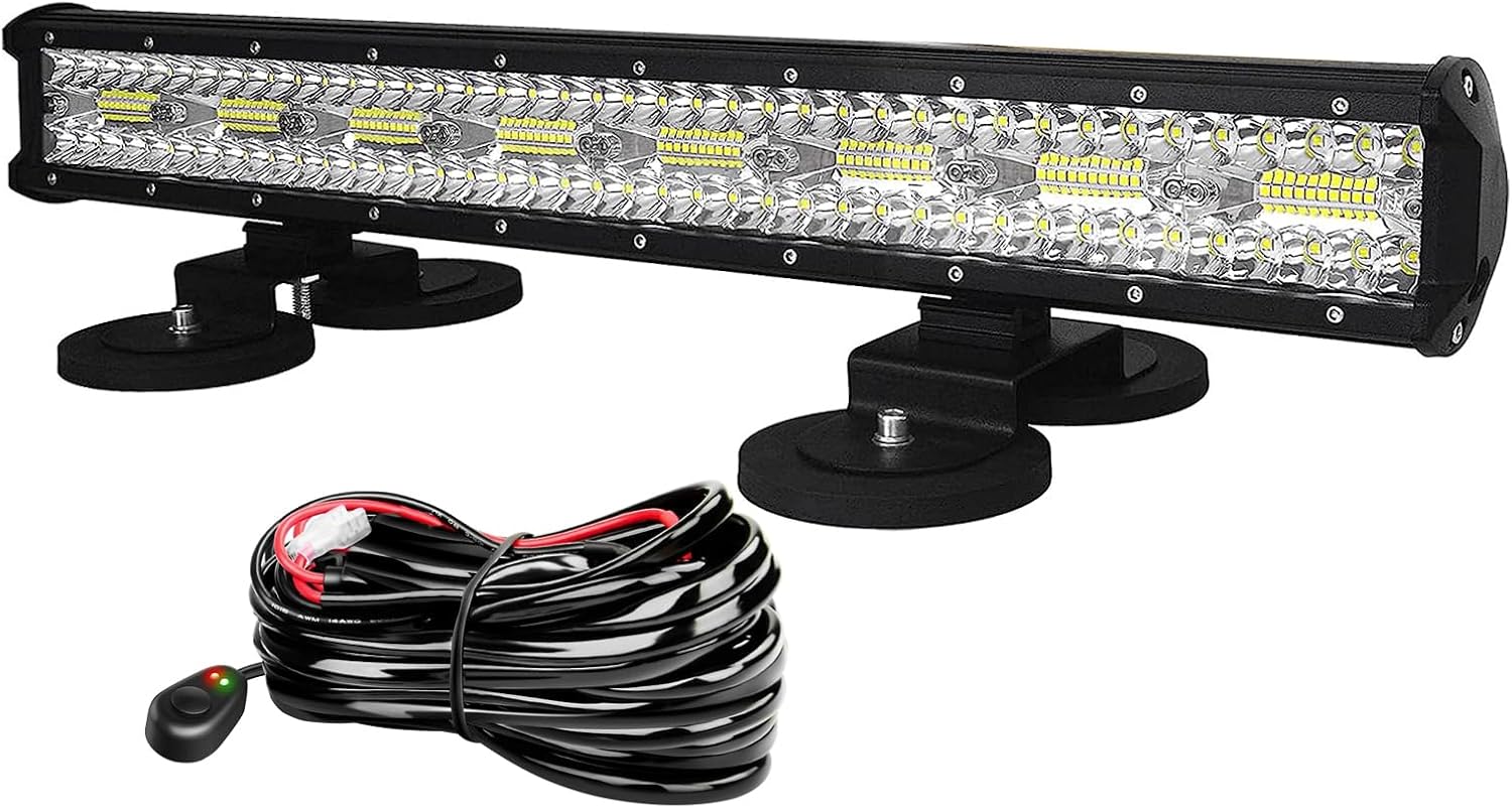 AUXTINGS 23 inch Off Road LED Light Bar with 2 PCS Strong Magnetic Bracket Mount Holder 12V 24V 8D Combo Led Bar/Work Lights Boat Lightbar Headlight for Car Jeep Truck SUV 4x4 ATV with Wire