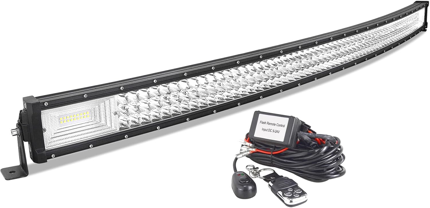 Willpower Curved 52 inch 675W Car Led Light Bar with 12V Strobe Remote Control Wiring Harness Cable Kit 6000K Flood Spot Beam Tri Row Driving Work Lamp for Jeep Off Road Truck SUV 4x4