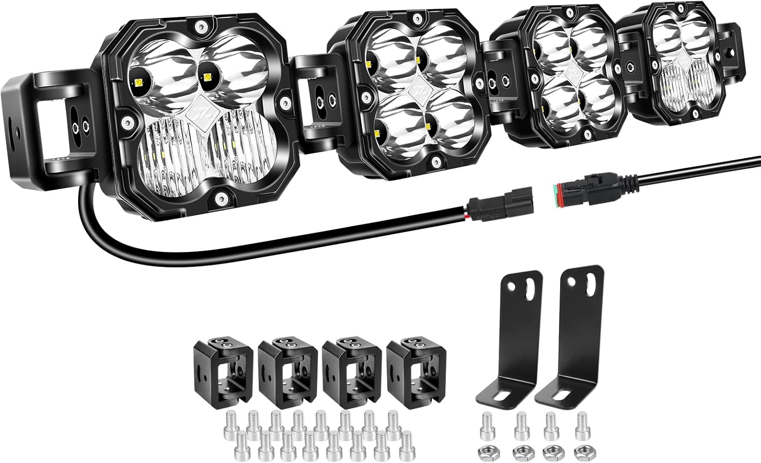 22 Inch Bright 100W LED Light Spot 24 Inch Black Housing Driving Lights LED Lights Off Road Lights for Trucks UTV ATV Pickup Boat SUV 4WD Free Wiring Kits