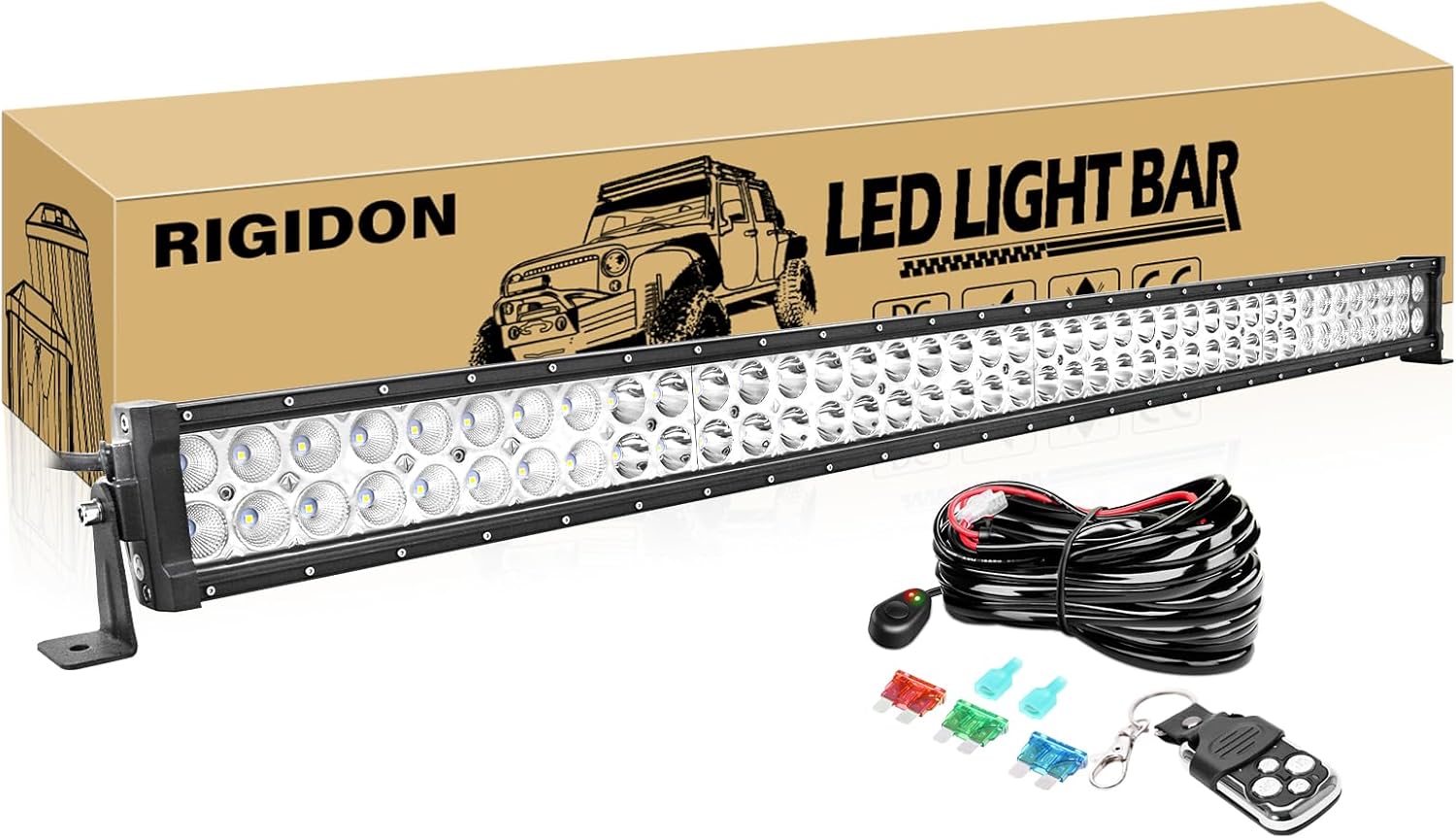 RIGIDON 42 Inch 240W Light Bar with Wire Harness Strobe Switch Remote Control, Double Row Flood Spot Combo 24000LM LED Light Bar Waterproof Driving Boat Off Road LED Work Light for Truck SUV ATV UTV