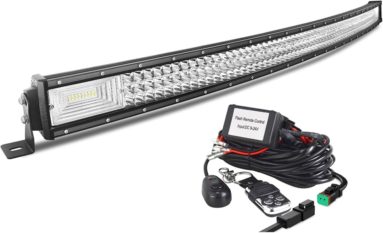 Willpower 52 inch Curved LED Light Bar with Remote Controller Wiring Harness,675W Triple Row Spot Flood Combo Beam,Strobe Flash Work Light Driving Lights,Waterproof Remote Controller On/Off Switch