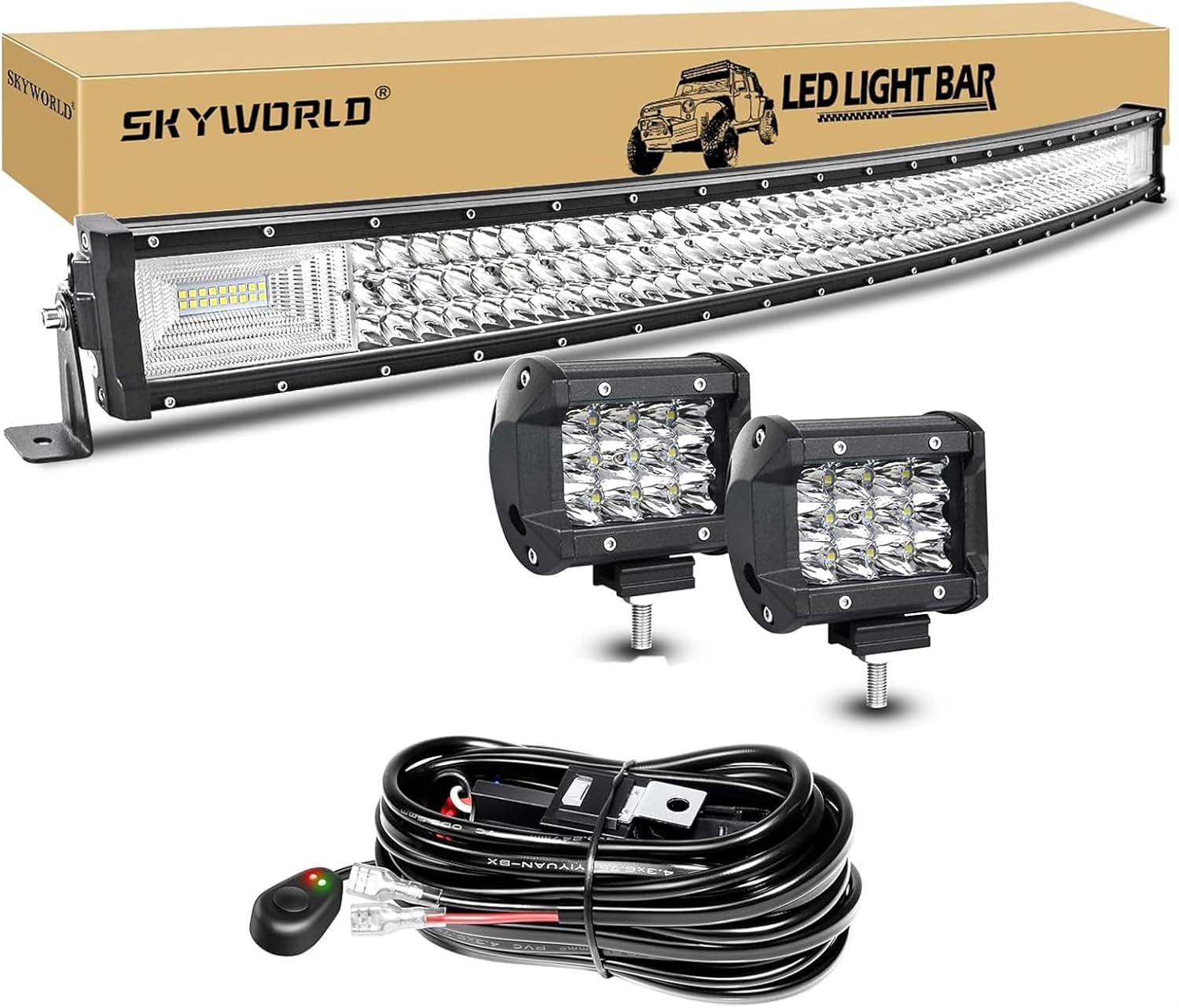 SKYWORLD 7D 42 inch 540 W Off Road Curved LED Light Bar 12V 24V,4in 2x36W Spot Led Bar/Work Lights Car Lighting Boat Lightbar with Wiring Harness Kit for Car SUV UTV Tractor Truck 4x4 4WD