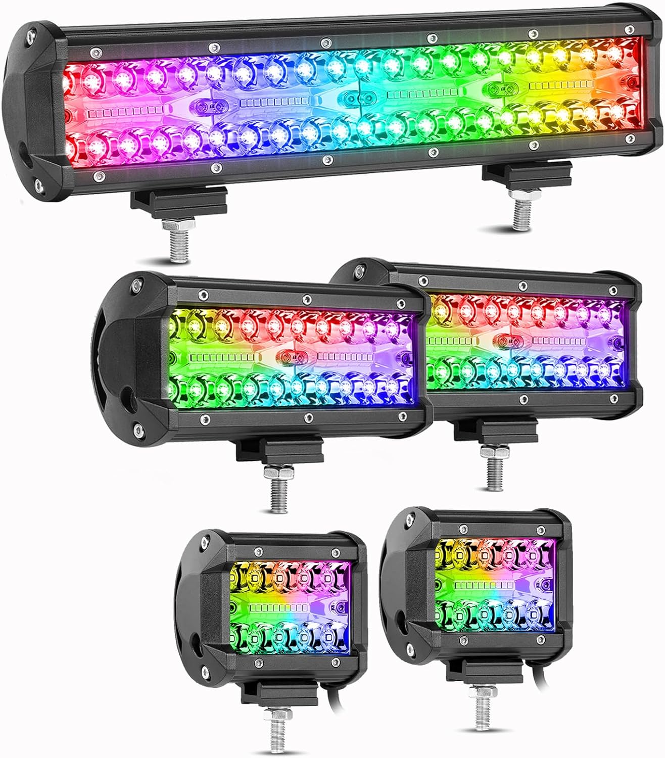 12 Inch RGB Light Bar with 7 Inch RGBW Light Pods with 4 Inch RGB LED Pods Color Chasing Light Bars for Wrangler Polaris RZR Ranger Can-am