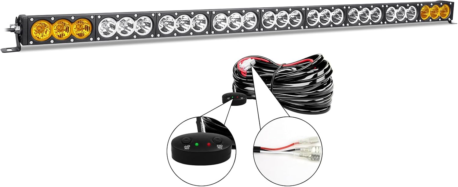 Willpower 49 inch LED Light Bar Single Row White Amber Dual Color 270W Off Road Light Bar Spot Flood Combo LED Work Light Truck UTV 4x4 Cars SUVs ATVs Boats Fog Driving Light with Wiring Harness kit