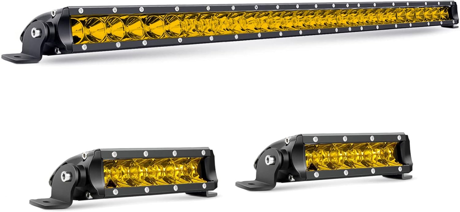 Chelhead Single Row Led Light Bars, 32'' Yellow Led Light Bar Hidden Bumper with 7'' Fog Lights for Trucks Hood