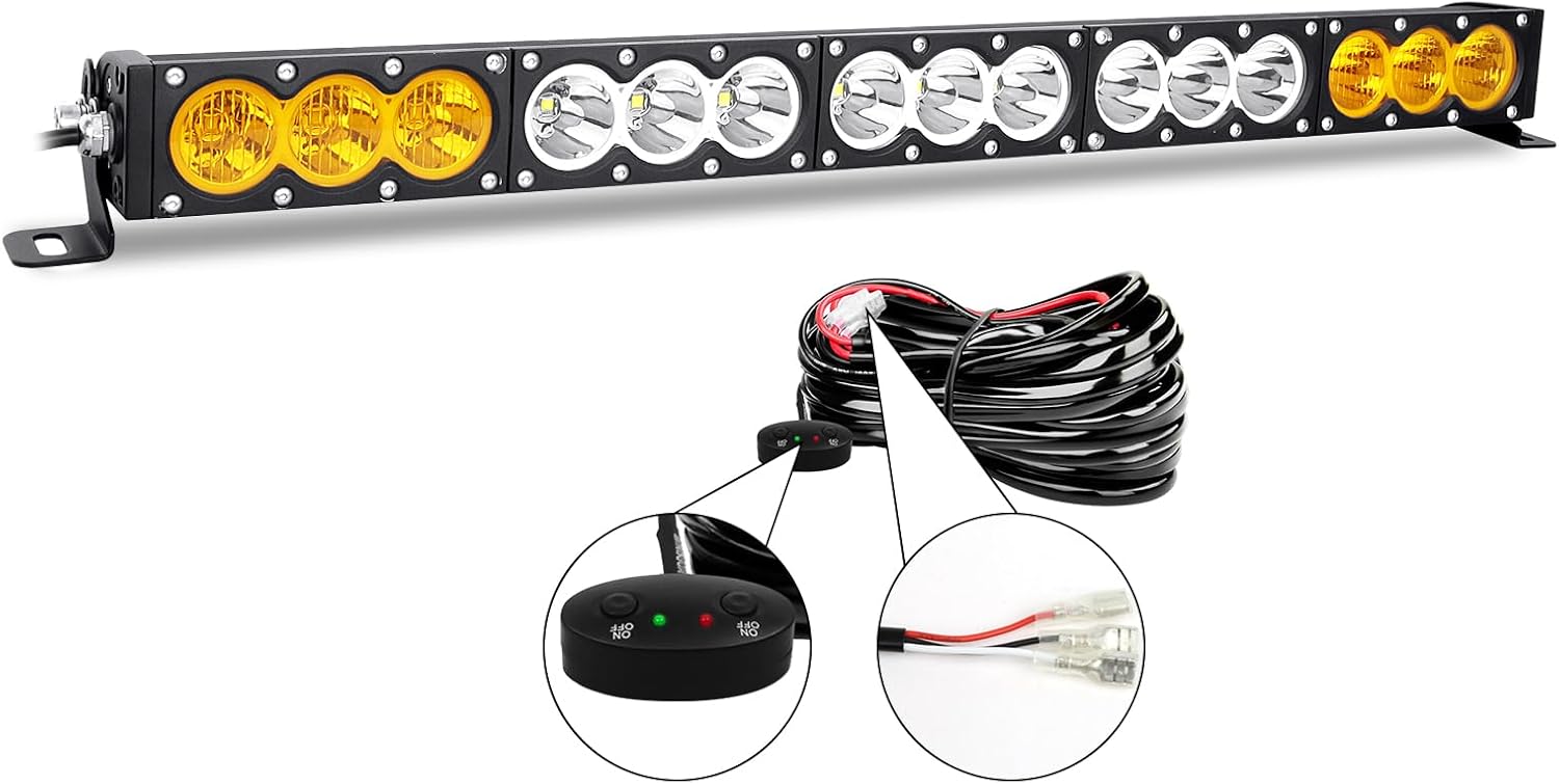 AUXTINGS 28 inch Single Row Dual Color LED Light Bar 150W Off Road Light Bar White Amber Combo LED Work Light Truck UTV 4x4 Cars SUVs ATVs Boats Fog Driving Light with Wiring Harness kit