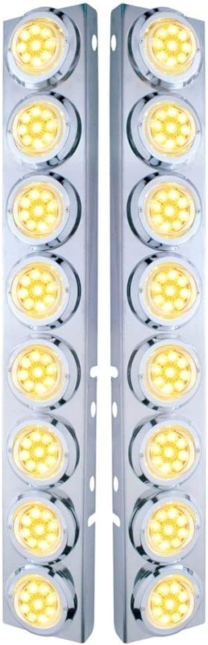 United Pacific 33703 Air Cleaner Light Bar, Front, Stainless Steel, with Bracket, Reflector/Clearance/Marker Light, Amber LED, Clear Lens, with Chrome Bezels, 9 LED Per Light, for Peterbilt Trucks