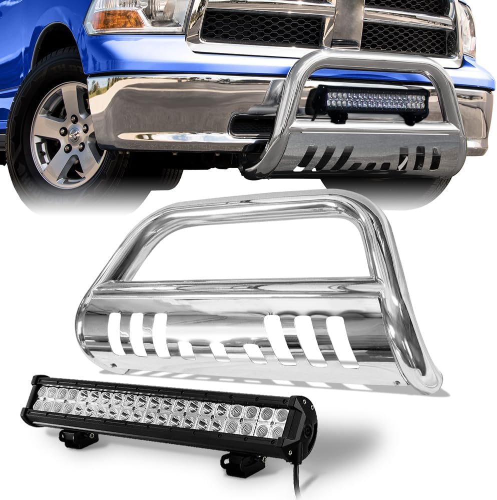 Stehlen 714937186422 Compatible with 2004-2009 2010 Dodge Durango / 2006 2007-2009 Chrysler Aspen 3" Classic Series Bull Bar (Polished Stainless Steel) with 120W CREE LED Light Bar
