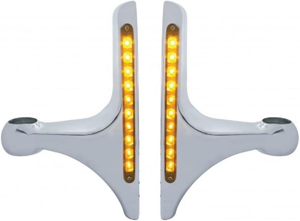 Pair Polish Aluminium Peterbilt Bracket Arms with 10 LED Amber Light Bar