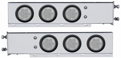 United Pacific 61735 Light Bar, Stainless Steel, Spring Loaded, Rear, Reflector/Stop/Turn/Tail Light, Red LED/Clear Lens, with 2" Bolt Pattern, with Chrome Bezels and Visors, 7 LED per Light