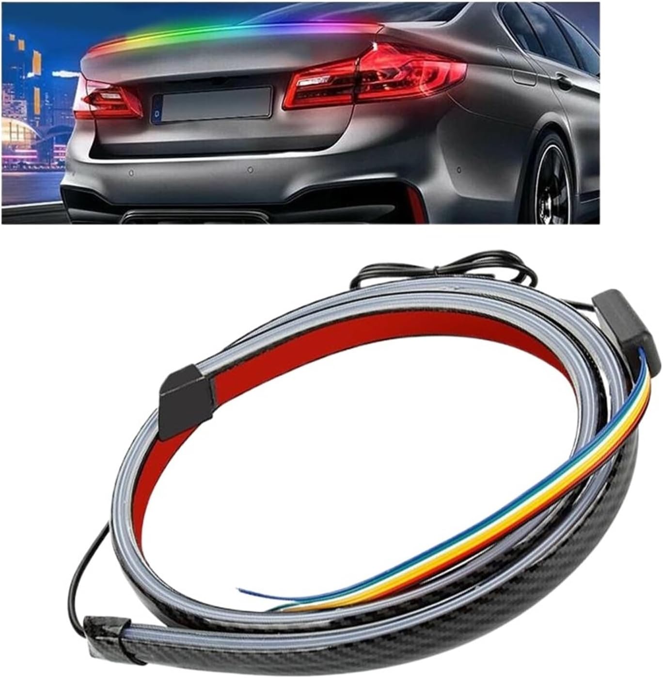 49'' RGB LED Tail Brake Light Strip Rear Wing Spoiler Lip Trim Compatible for Car SUV Trunk Pickup Off-Road