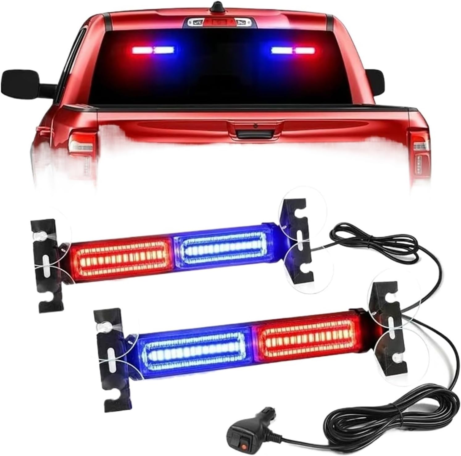 2-in-1 12V 24V LED Strobe Lights Compatible with Emergency Flash Warning Lamp Windshield Bar Red Blue Amber White Green Car Light Assembly(All blue)