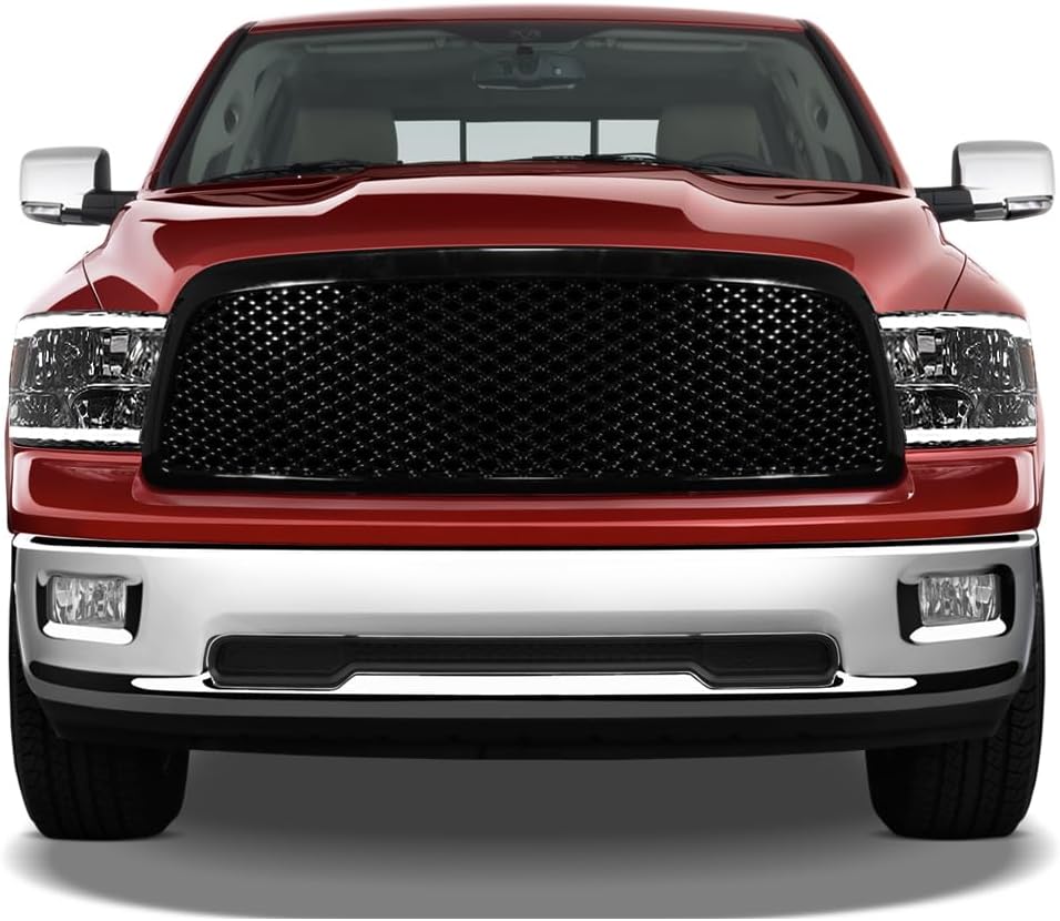 7422451562532 Compatible with 2009-2012 Dodge Ram 1500 Switchback Sequential LED Strip Bar Chrome Housing Headlights with Amber Reflector + Glossy Black Mesh Front Hood Bumper Grille