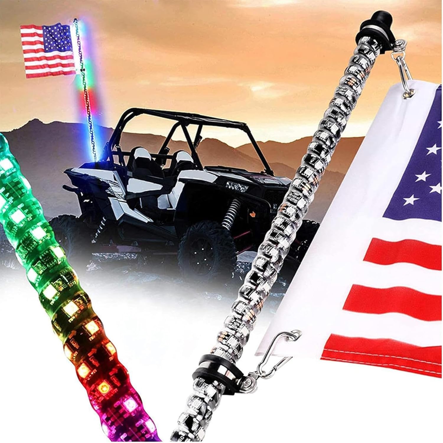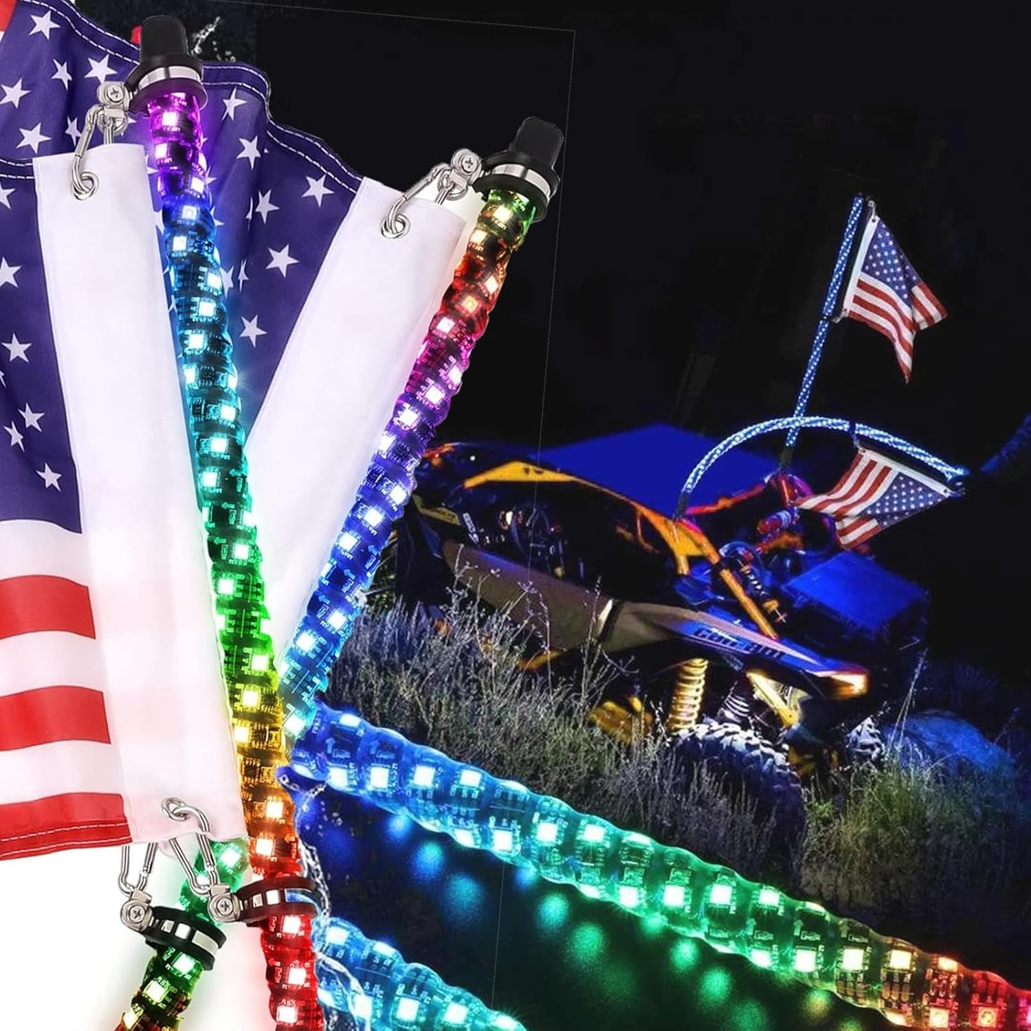 2pcs 4ft Spiral RGB LED Whip Light, RGB Dancing Chase Lighted Offroad 360°Spiraling Rising Dream Wrapped Dancing Whips for ATV UTV RZR