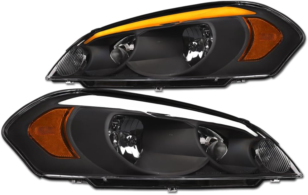 Sequential LED Strip Tube Bar Black Housing Crystal Headlights Signal Lamps Amber Reflector nb Compatible with 06-13 Chevy Impala / 14-16 Limited / 06-07 Monte Carlo