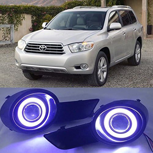 LED Angel Eyes DRL Fog Lights with H11 55W Halogen Bulbs for 2008 2009 2010 Toyota Highlander