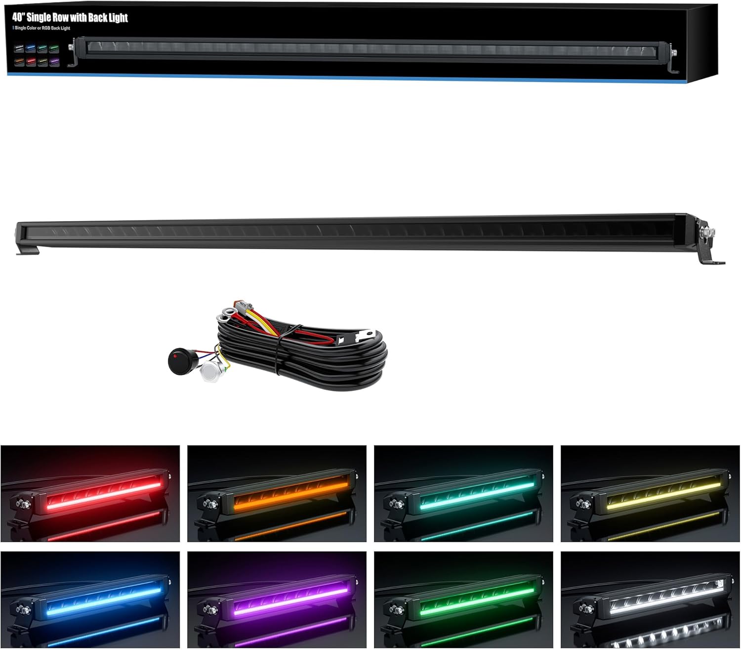 4WDKING 40 Inch Slim LED Light Bar with RGB Accent Lighting, Screwless Design, IP68&IP69K Waterproof, 200W Off Road Driving Lamp with 10FT Wire Harness for Truck/Pickup/ATV/UTV/SUV/Golf Cart/Boat