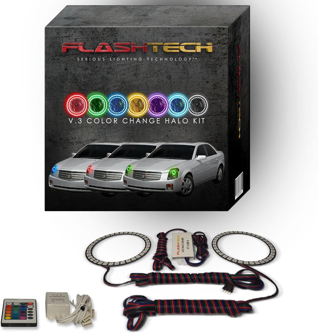 Flashtech LED RGB Multi Color Halo Ring Headlight Kit with V.3 Fusion Color Change IR Remote Compatible With Cadillac CTS 03-07