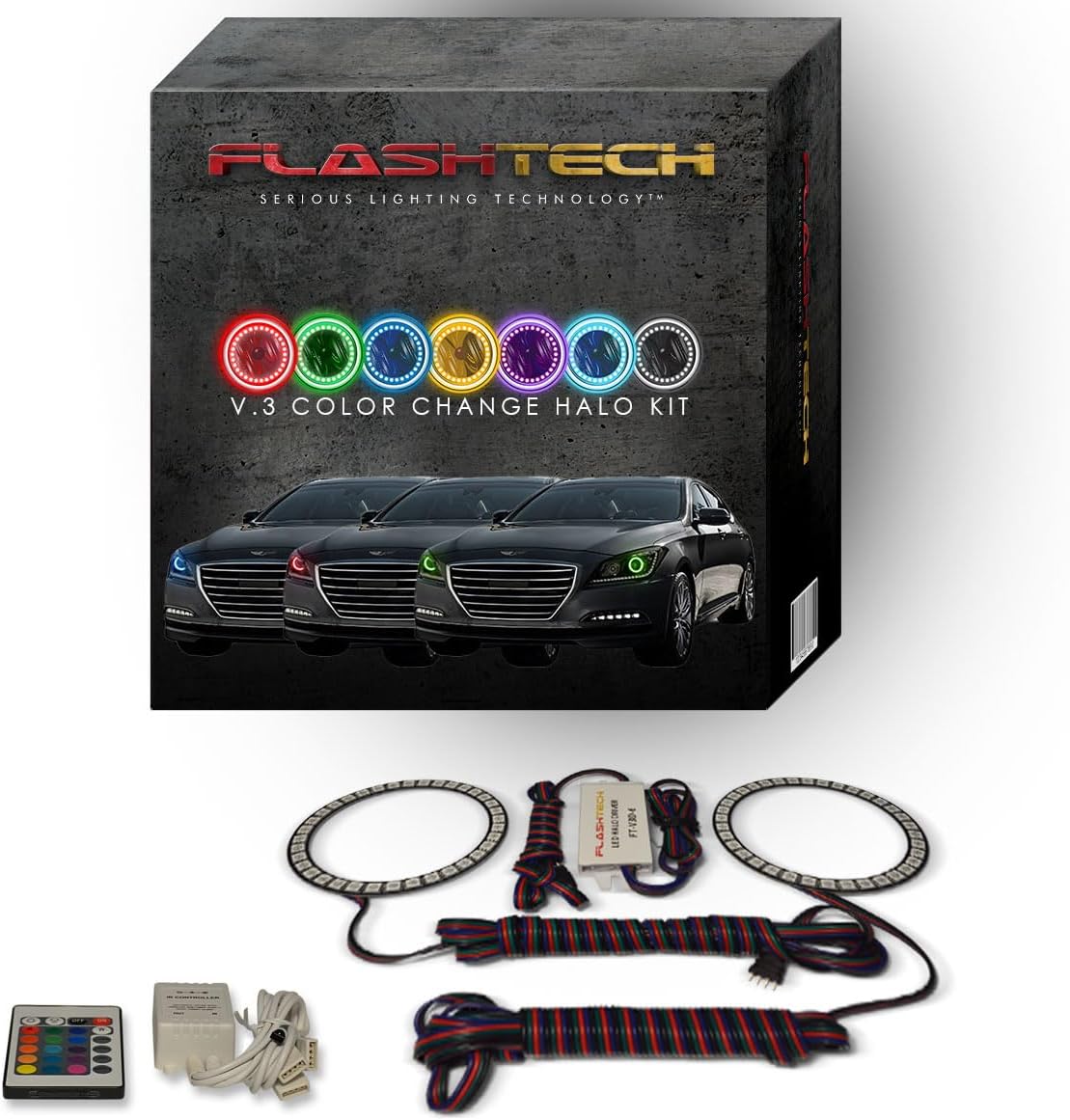 Flashtech LED RGB Multi Color Halo Ring Headlight Kit with V.3 Fusion Color Change IR Remote Compatible With Hyundai Genesis 15-16