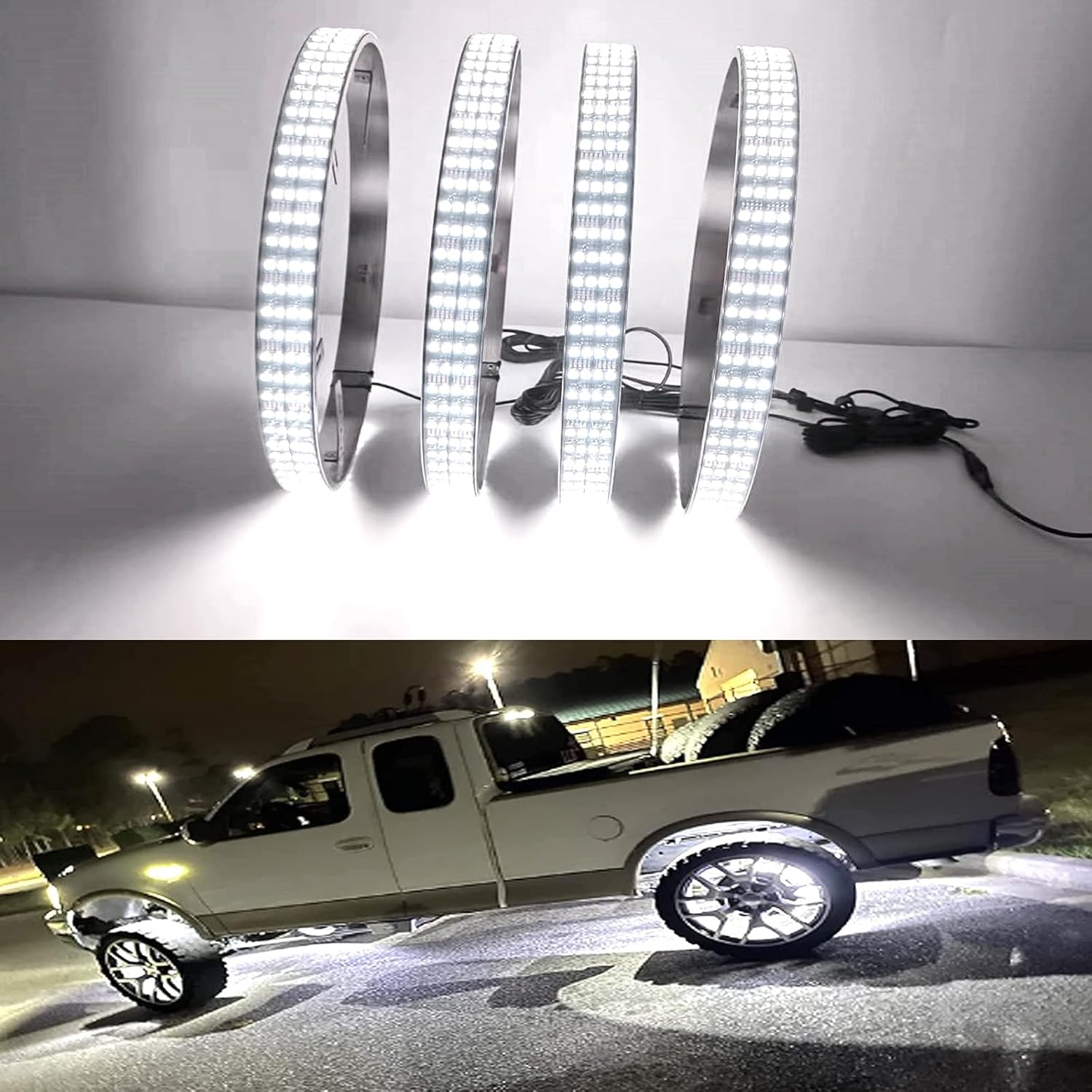 15.5in Pure White Wheel Ring Lights,12V New Upgrade Quad Rows 1152-LEDs Waterproof Tire Rim Light with RF Remote APP Control for Truck Car SUV Pickup