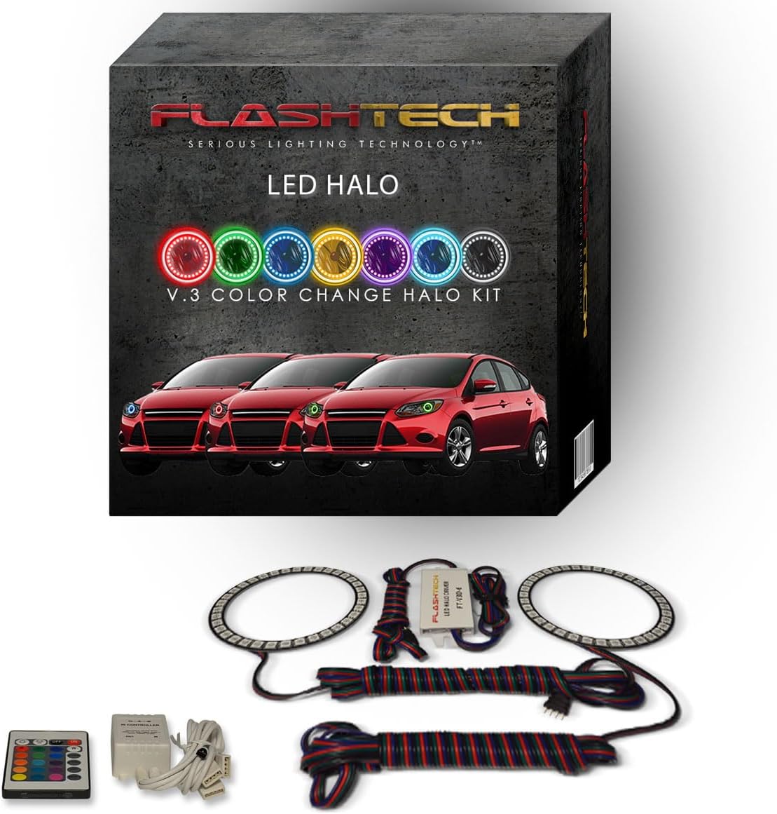 Flashtech LED RGB Multi Color Halo Ring Headlight Kit with V.3 Fusion Color Change IR Remote Compatible With Ford Focus 12-15