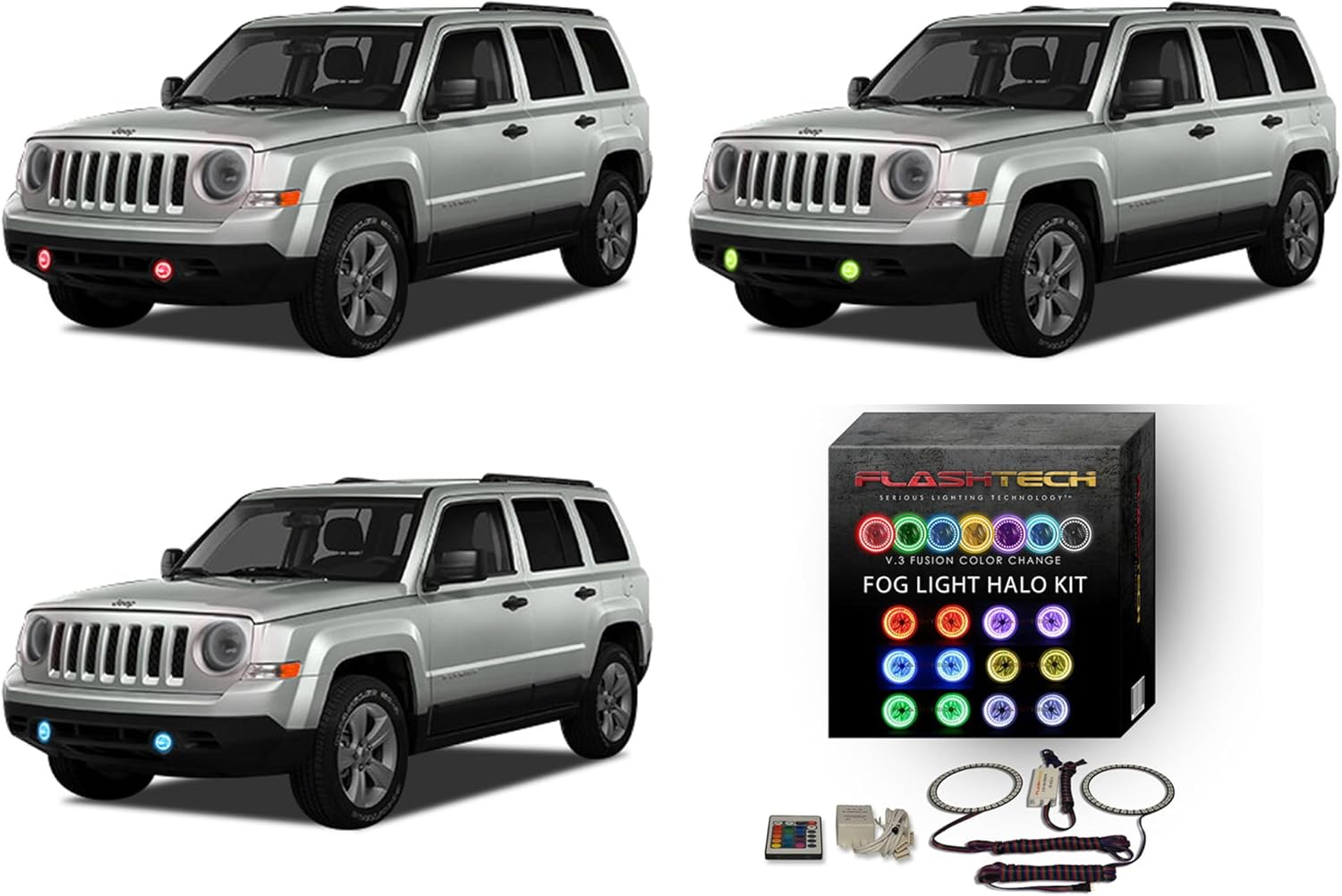Flashtech LED RGB Multi Color Halo Ring Fog Light Kit with V.3 Fusion Color Change IR Remote Compatible With Jeep Patriot 11-15