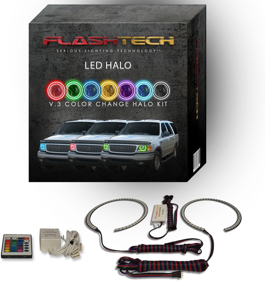 Flashtech LED RGB Multi Color Halo Ring Headlight Kit with V.3 Fusion Color Change IR Remote Compatible With Ford Expedition 97-02