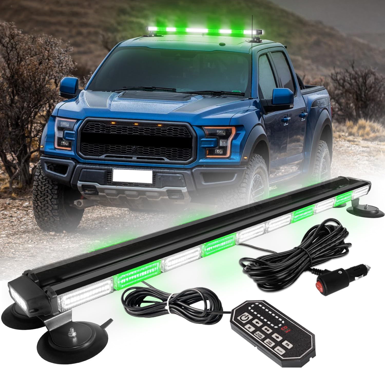 42inch 206 LED Rooftop Emergency Strobe Light Bar Flashing Safety Lights w/Controller Traffic Advisor Warning Hazard Light for Trucks Vehicles Construction Tow Pickup Snowplow Green White