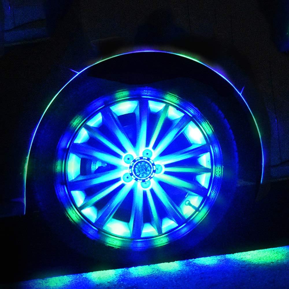 Tire Lights Led Car, Waterproof Solar Led Flashing Light Car Tire Decoration Fitting Hot Wheel, RGB Flashing Colorful Exterior Lights, Safety Warning Light, 4Pcs,Blue-Green