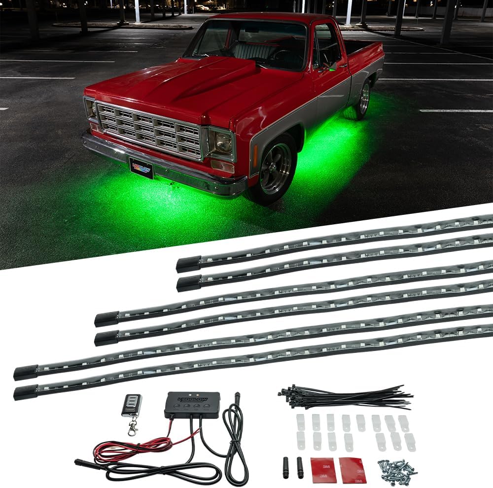 LEDGlow 6pc Multi-Color Slimline Flexible Truck Underbody Underglow Accent Neon LED Lighting Kit - 10 Solid Colors - 13 Patterns - Music Mode - Flex Tubes Contour Vehicle - Control Box & Remote