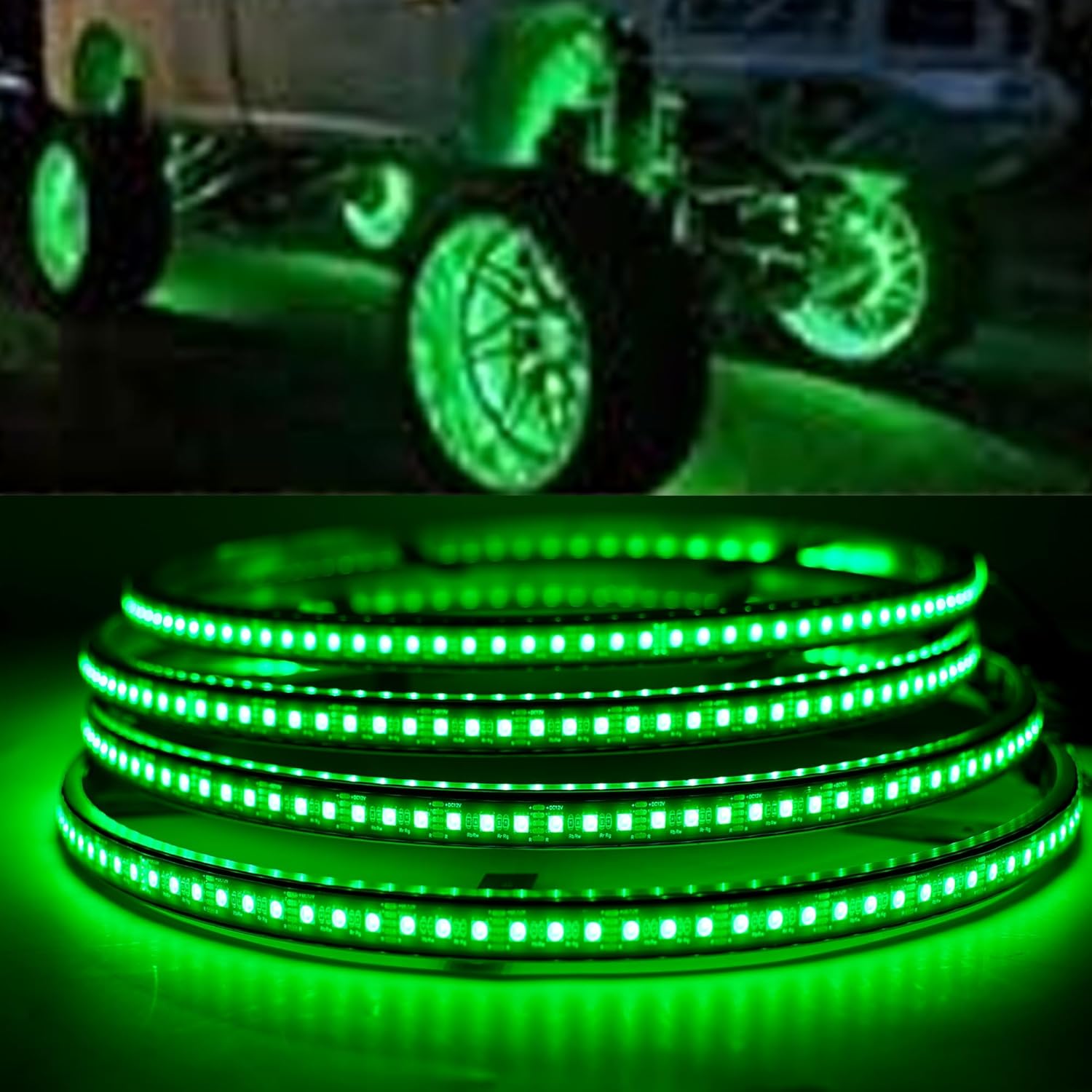 17.5'' Green Solid Color Led Wheel Ring Lights IP68 Waterproof 4 Lights/Set Brightest 300Leds Rim Lights Tire Lights