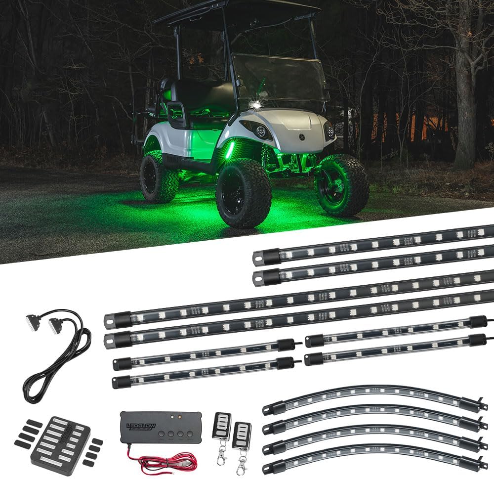 LEDGlow 12pc Million Color LED 12V-72V Electric 4-Seater Golf Cart Underglow Neon Lighting Kit Wheel Well & Interior Lights - Fits EZGO, Yamaha, Club Car, ICON, Evolution - Flexible Voltage Reducer