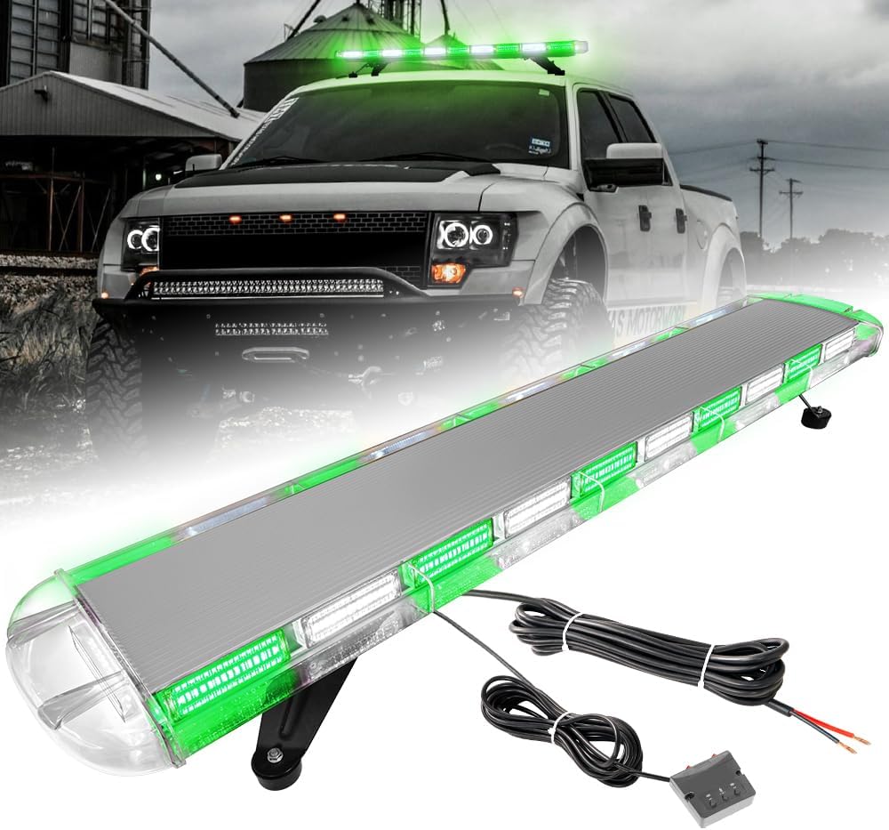 ASPL 46 inch 220 LED Rooftop Low Profile Strobe Light Bar Emergency Warning Beacon Car Hazard Flashing Construction Roof Lights Bars for Trucks Tow Automotive Construction Vehicle (Green/White